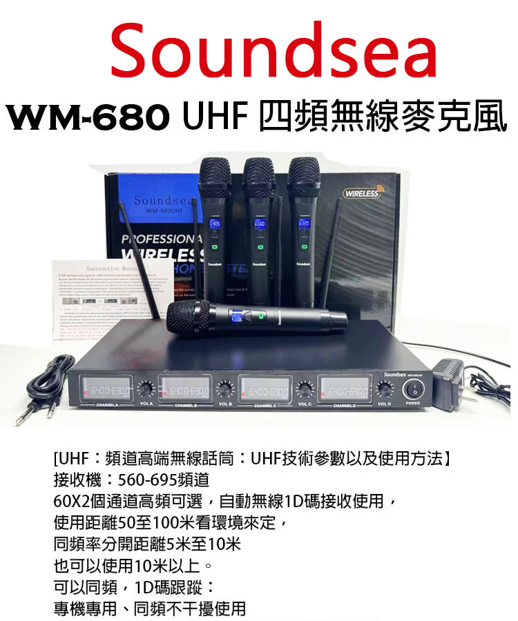 SOUNDSEA WM-680(UHF 四頻無線麥克風)