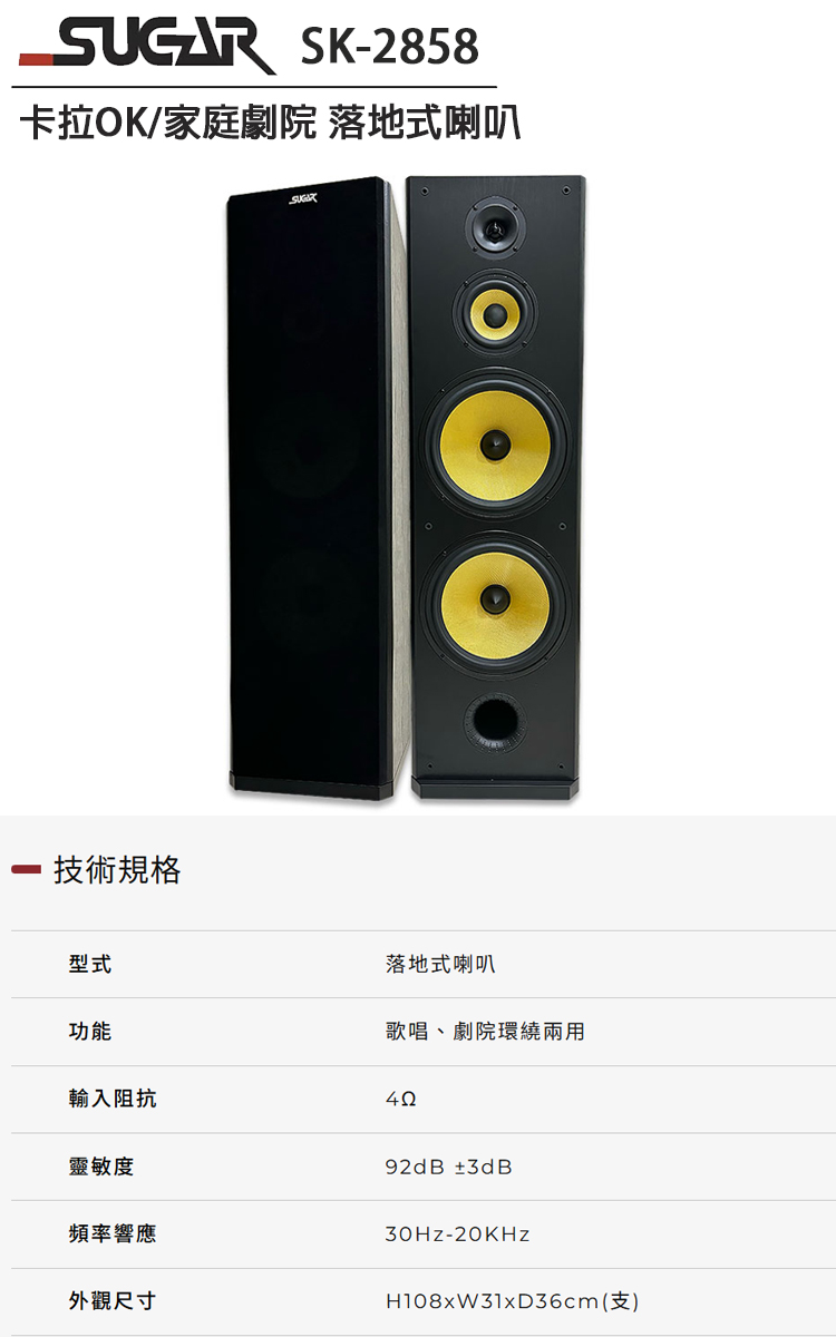 SUGAR SK-2858 卡拉OK/家庭劇院 落地式喇叭 全新公司貨 台灣製造