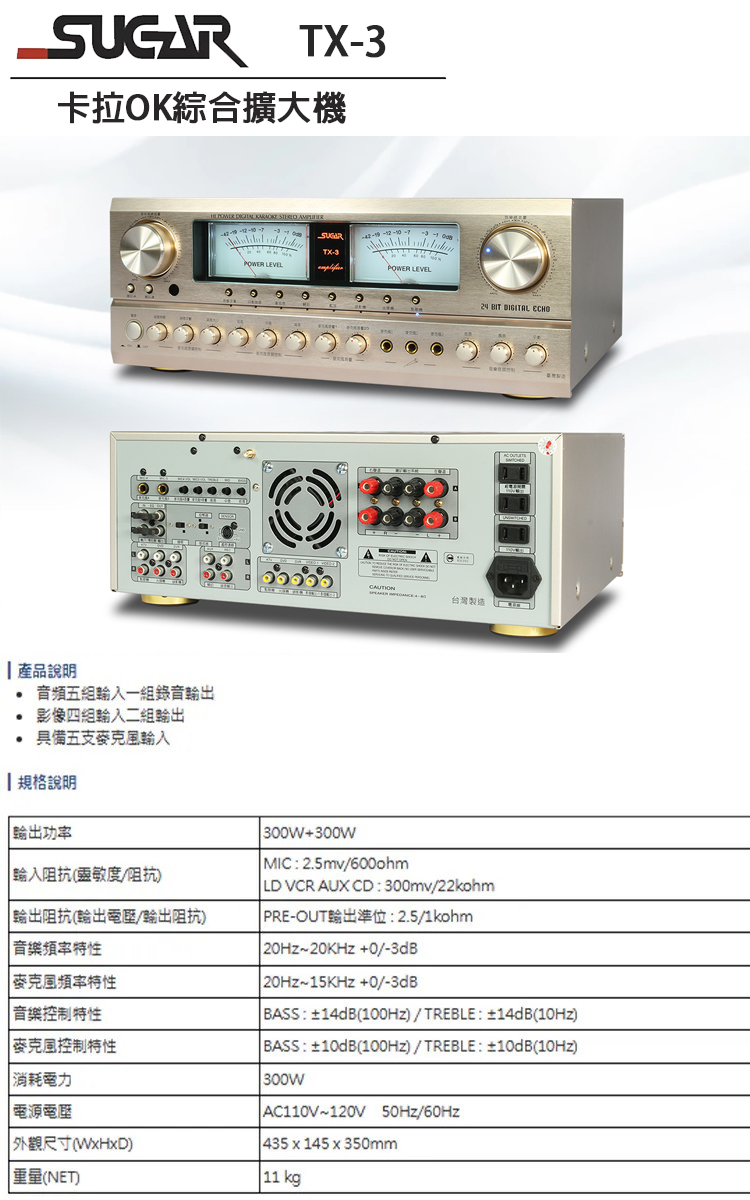 SUGAR TX-3 專業卡拉OK擴大機 (香檳金) 全新公司貨