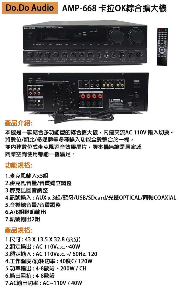 Do Do AUDIO AMP-668 卡拉OK綜合擴大機 全新公司貨