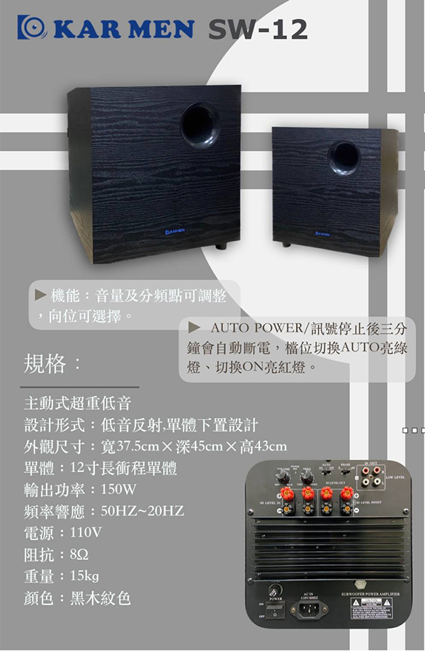 KAR MEN SW-12 主動式重低音喇叭