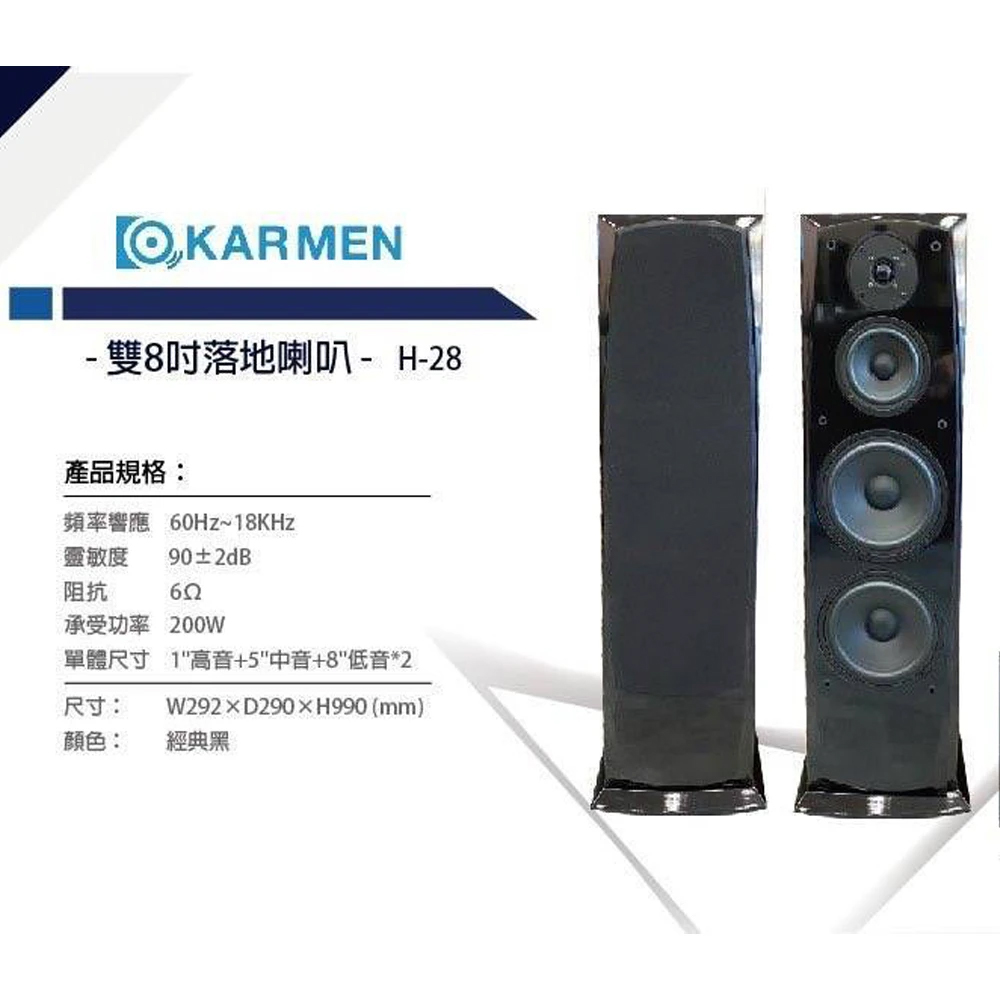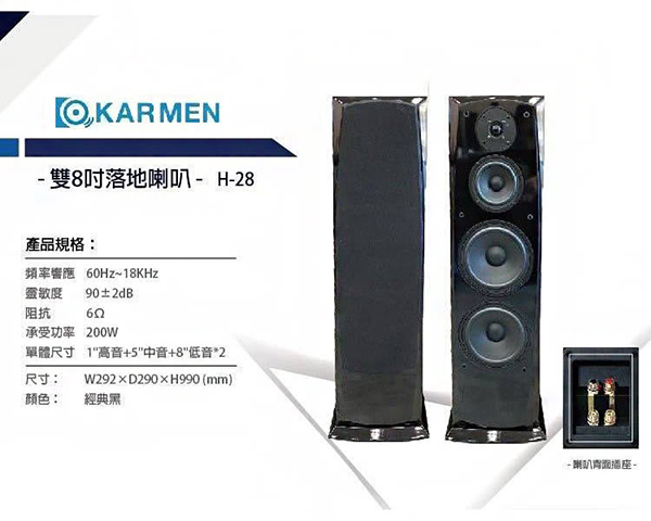 KARMEN H-28 落地式喇叭 雙8吋落地式喇叭(黑色一對)