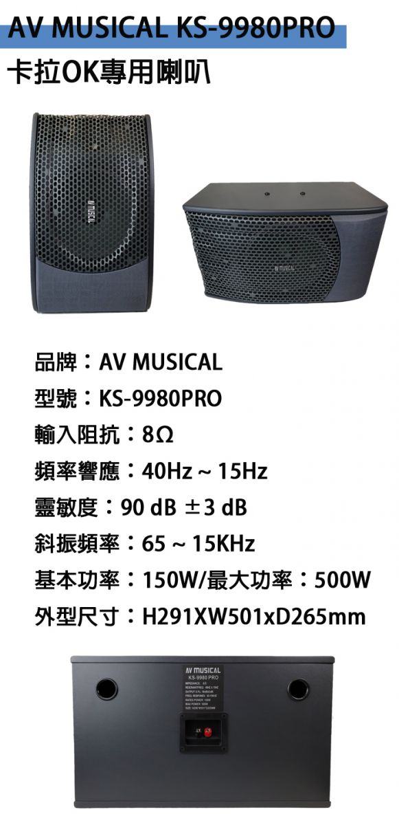 福利品 AV MUSICAL KS-9980PRO 卡拉OK專用喇叭/懸吊式/立放/平放式
