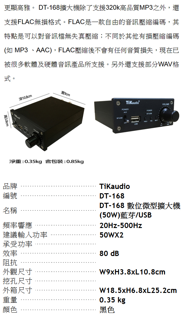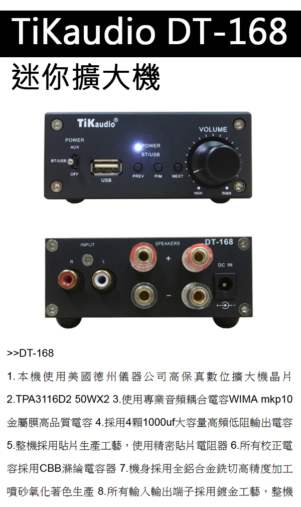 TiKaudio DT-168(迷你擴大機 金屬外殼. USB.藍芽播放. D類擴大機)
