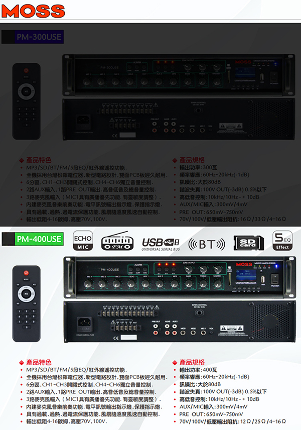 MOSS PM-400USE 商用/公共空間廣播擴大機 400W