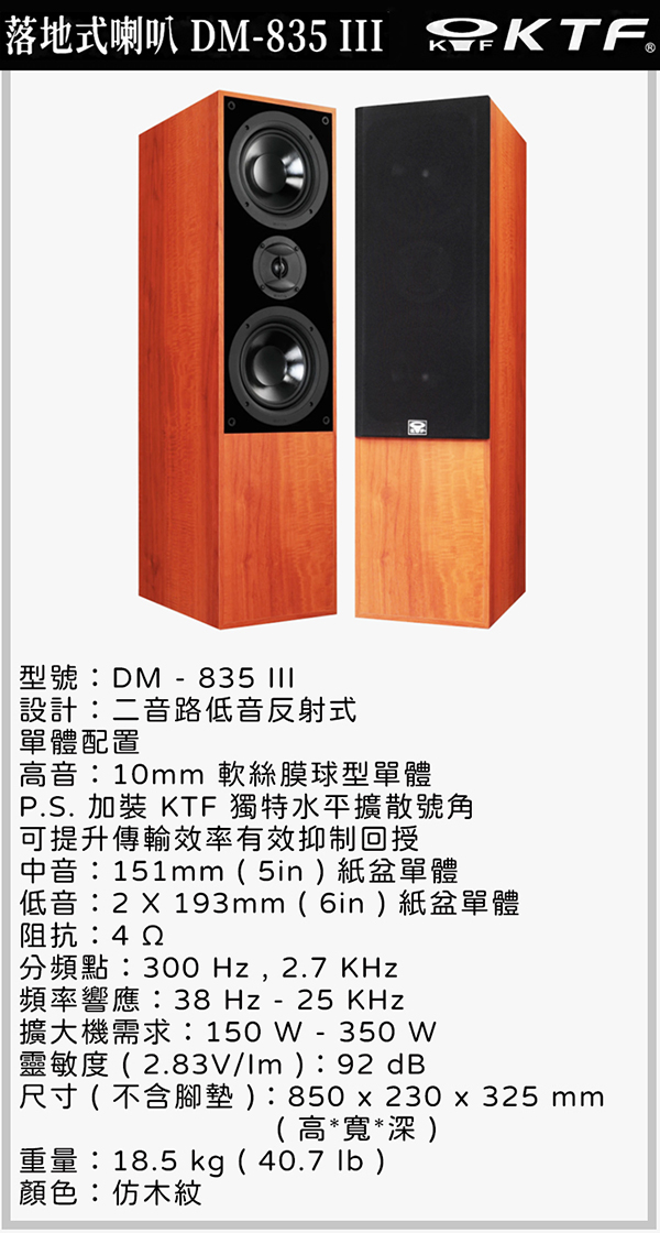 KTF DM-835 III 落地式喇叭木紋色一對