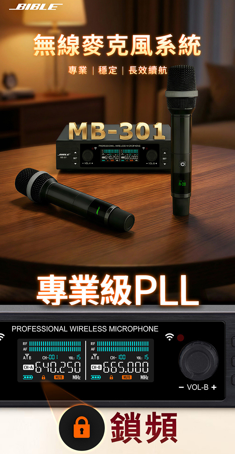 BIBLE MB-301 無線麥克風 專業歌唱雙頻道無線麥克風