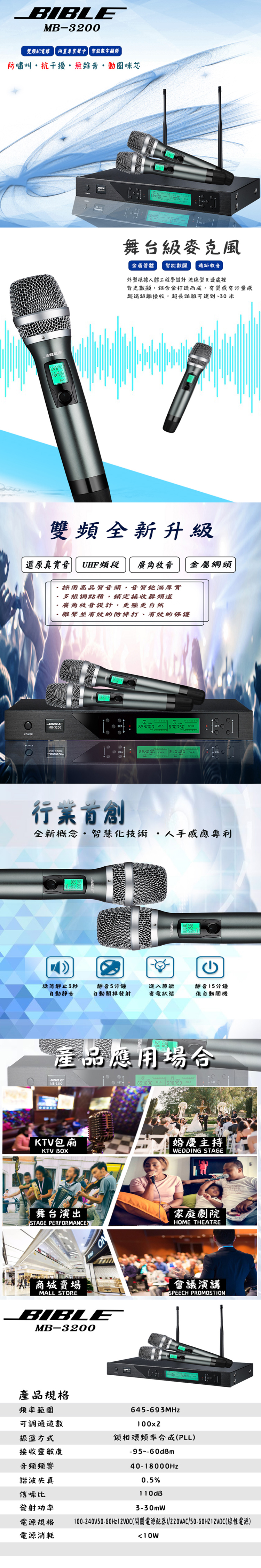 BIBLE MB-3200 UHF 無線雙通道麥克風 台灣公司貨