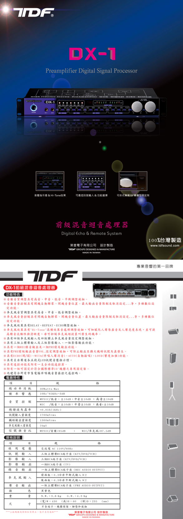 TDF DX-1 前級混音迴音處理器 贈DC PRO-161有線麥克風1支、延長線IA-6(白) 全新公司貨
