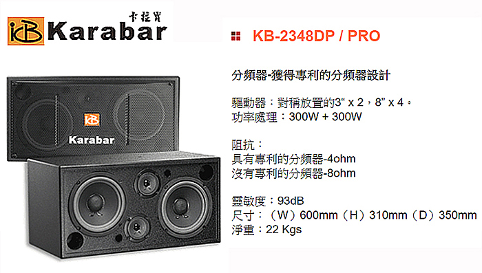 KARABAR KB-2348DP/PRO 卡拉OK專用喇叭