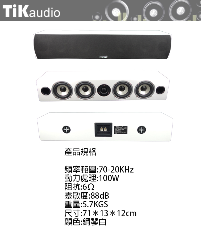Tikaudio S-5501 中置喇叭(白/支) 全新公司貨
