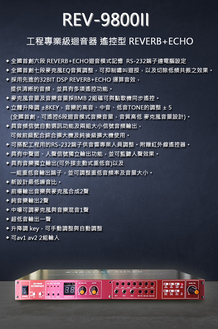 Echo Part REV-9800II 麥克風迴音混音機