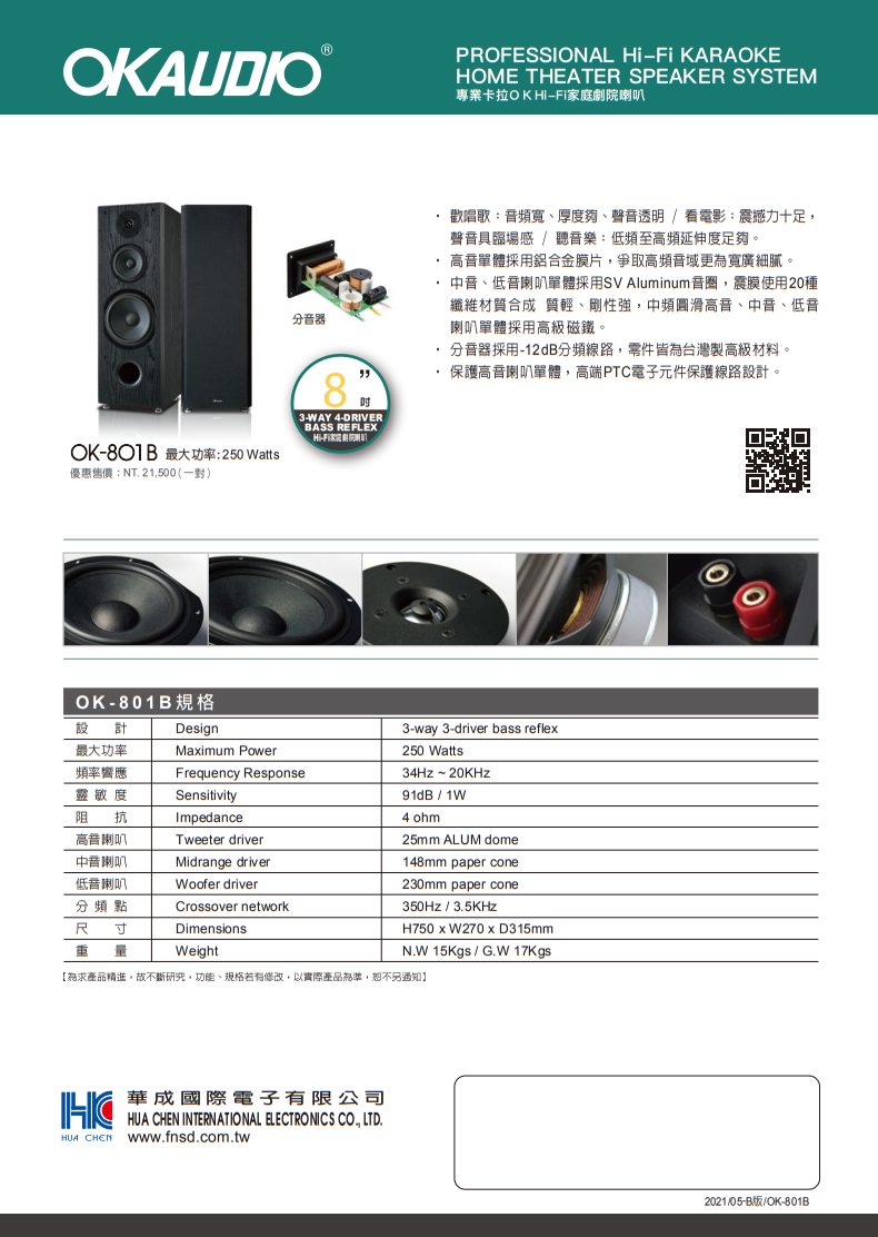 OK AUDIO OK-801B卡拉OK喇叭(對) 贈350#發燒線3M+3M 全新公司貨