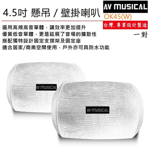 AV MUSICAL OK45 白色 4.5吋懸吊/壁掛喇叭一對