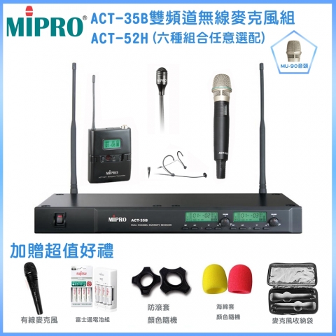 MIPRO ACT-35B/ACT-52H/MU90 雙頻道自動選訊無線麥克風 六種組合 贈多項好禮