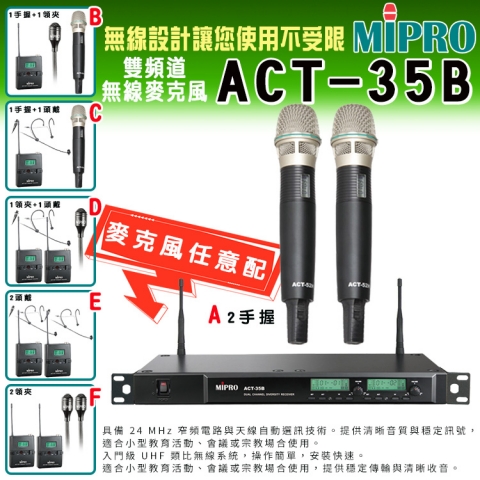 MIPRO ACT-35B 類比雙頻道無線麥克風(ACT-52H/MU90 配件六擇一)